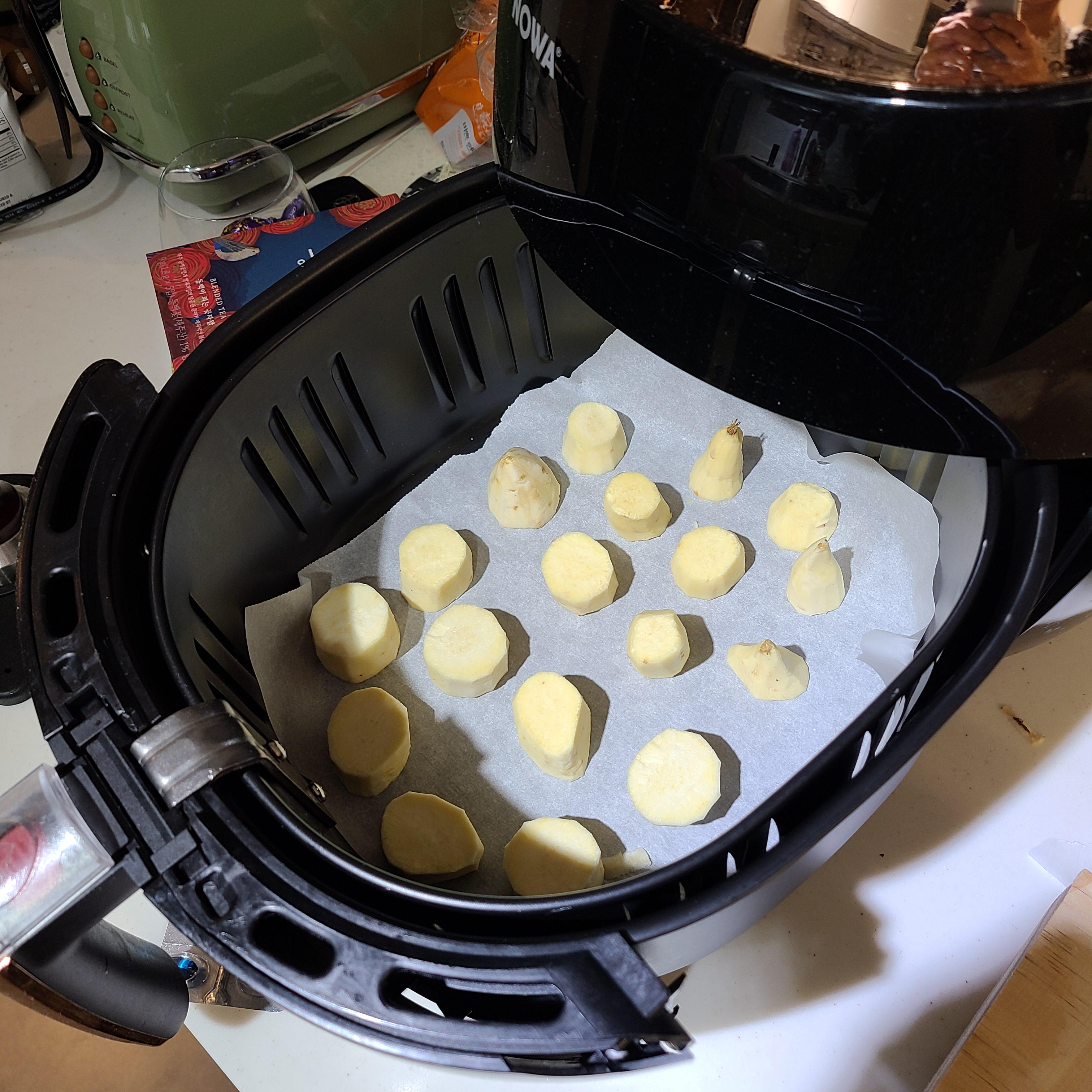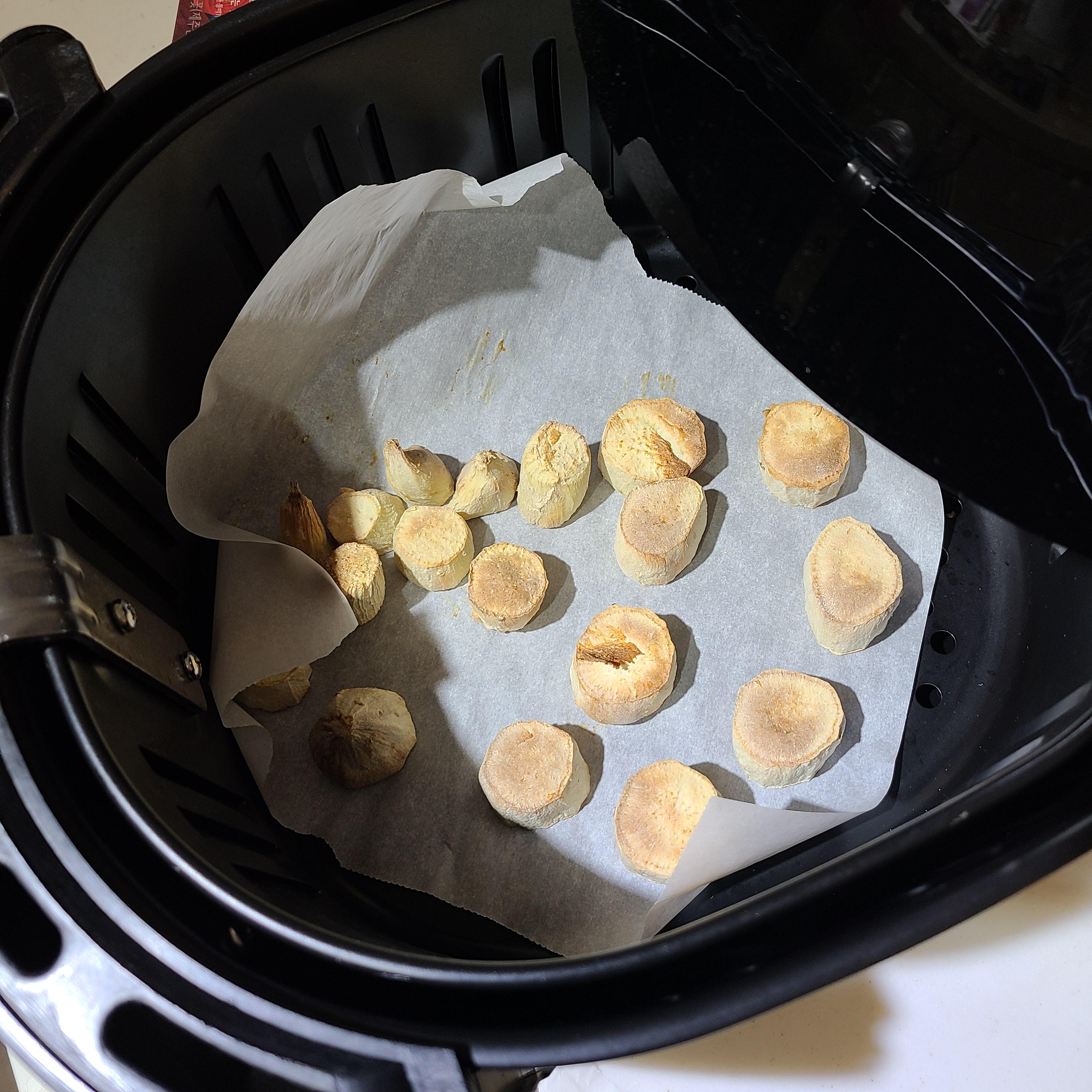 - 에어프라이어에 종이호일 깔고