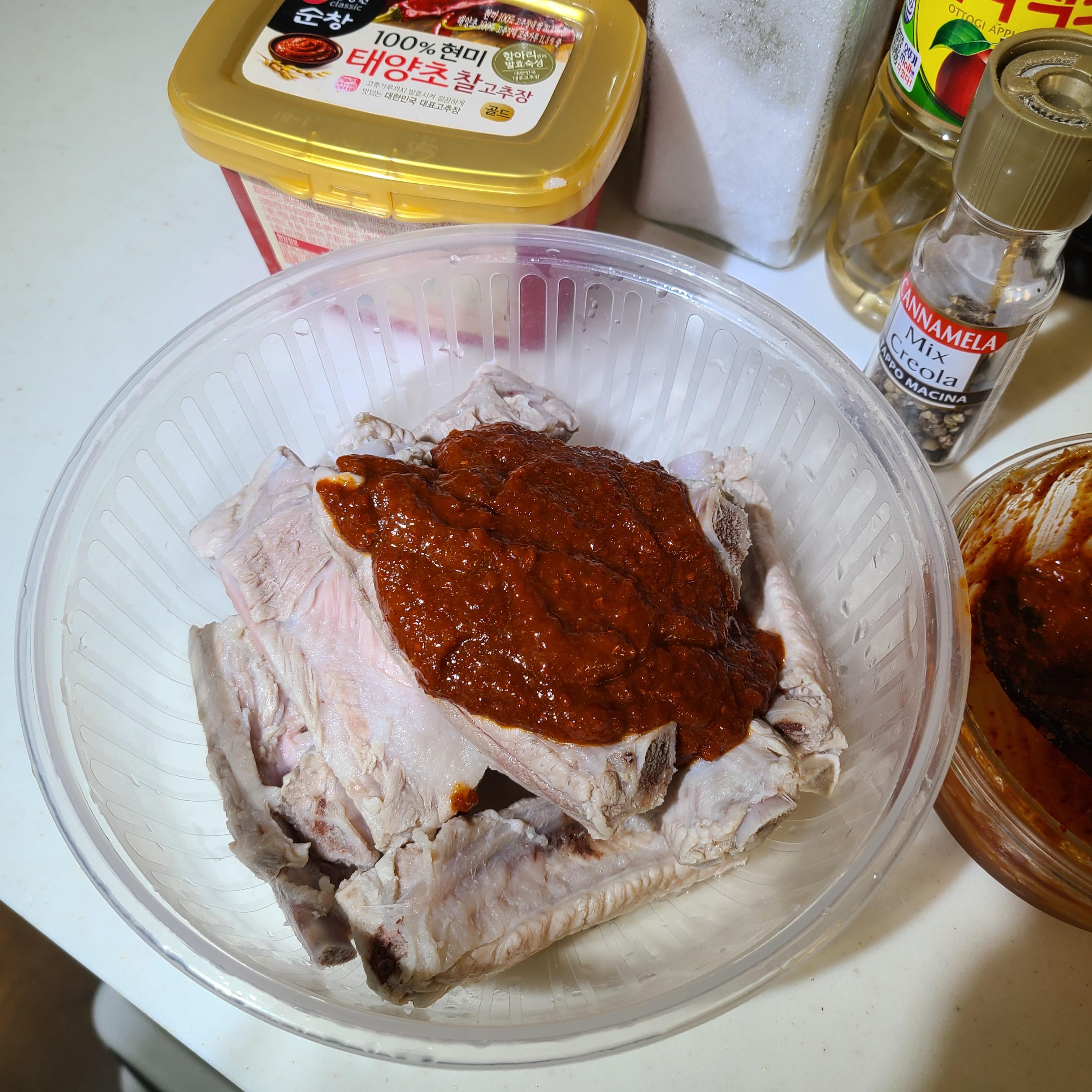 크게 핏물빼기 -> 잡내제거 -> 양념